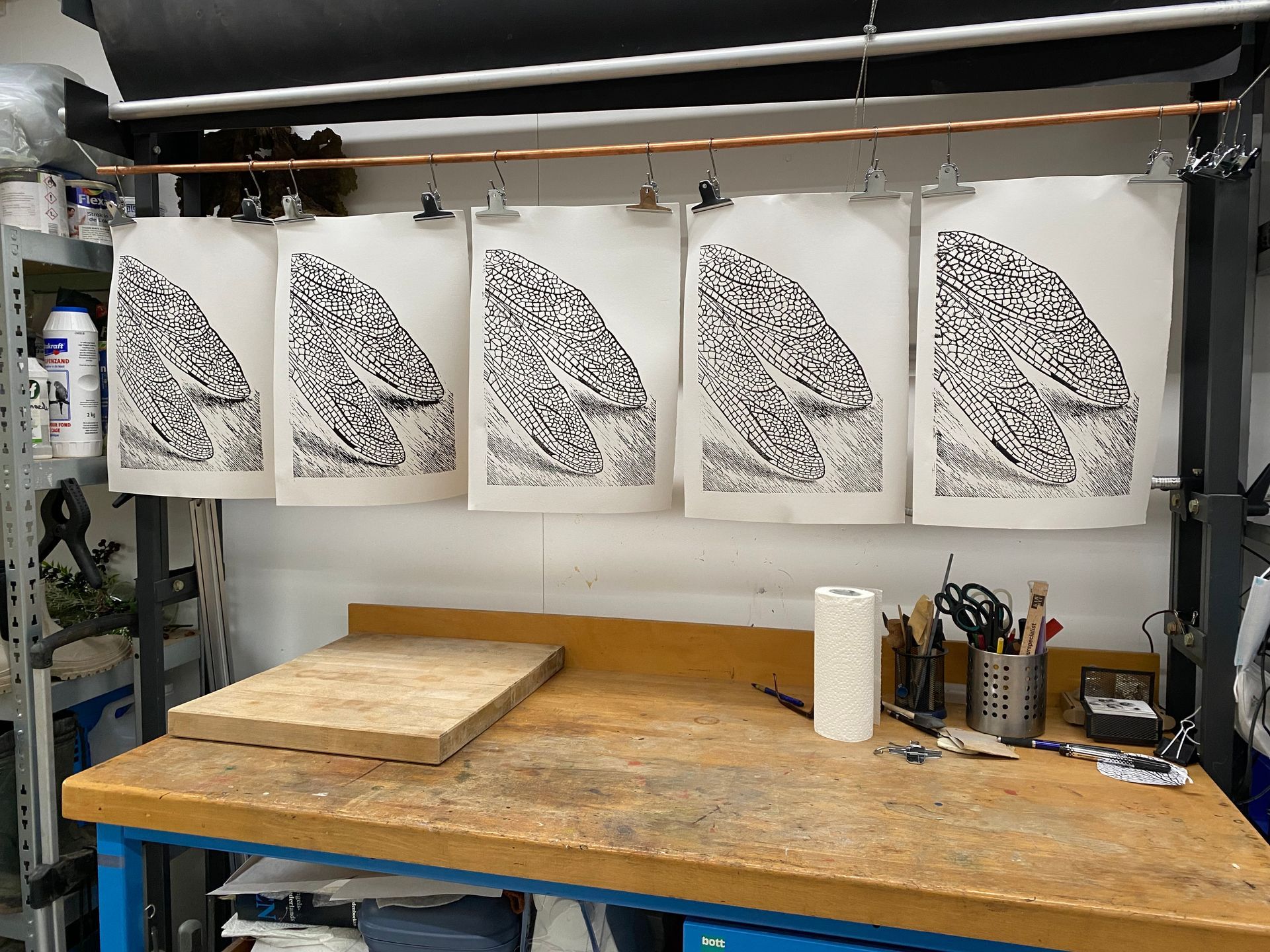 Libellevleugels hangen te drogen